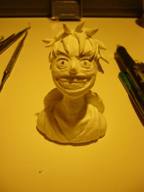 何を思ったか、無性に何かを作りたくなり手元にあったワンピースの単行本を見ながらモンキー・D・ルフィの胸像を作ってしまいました。習作っていうやつですかね?