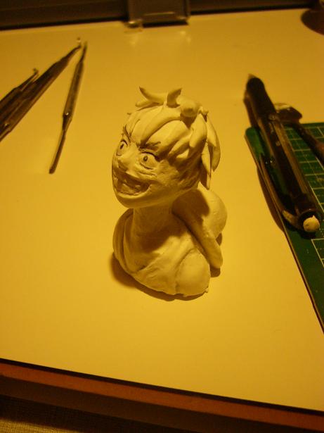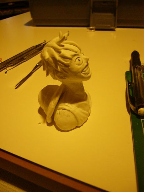 Mr.クレイで3時間ほどでここまで形になりました。この角度から見るとそこそこに見えるんですが、ほかの角度から見るとすごくかっこ悪いです。左右で同じ顔になるように作れるようにならないとダメですね。まだまだ練習が必要です。