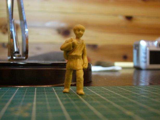 次に足をつけて自立できるようにしました。大まかに足の形にエポパテを盛り付けて、硬化したらデザインナイフで削って形を作りました。