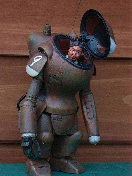 ボディはダークイエローを、出っ張った所を中心にドライブラシの要領でこすりつけて、下地色がでたような表現にしました。