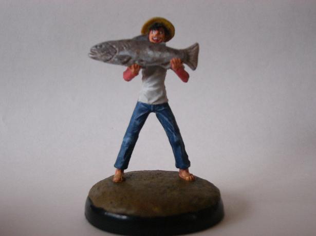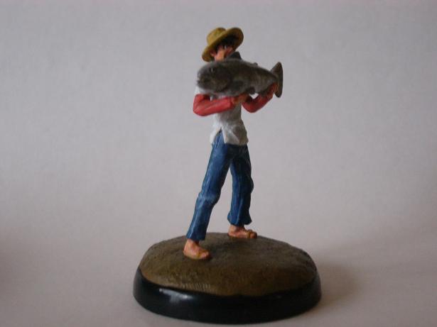 ポーズは釣りをしているところにしようかと思ったのですが、ちょっと変えて釣り上げた後の感じにしてみました。魚を持たせたいのですが、手の部分の調整が面倒くさそうです。